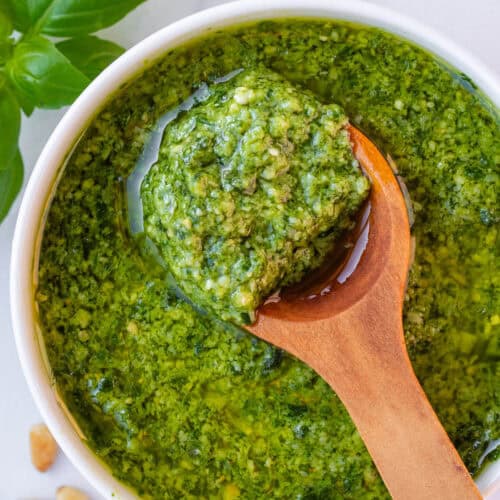 You can keep it rustic, or with a few extra steps you can make it an even more vibrant green color by blanching the basil and also by straining it to be more clear. I have tested both and equally love them and added extra steps depending on your preference.