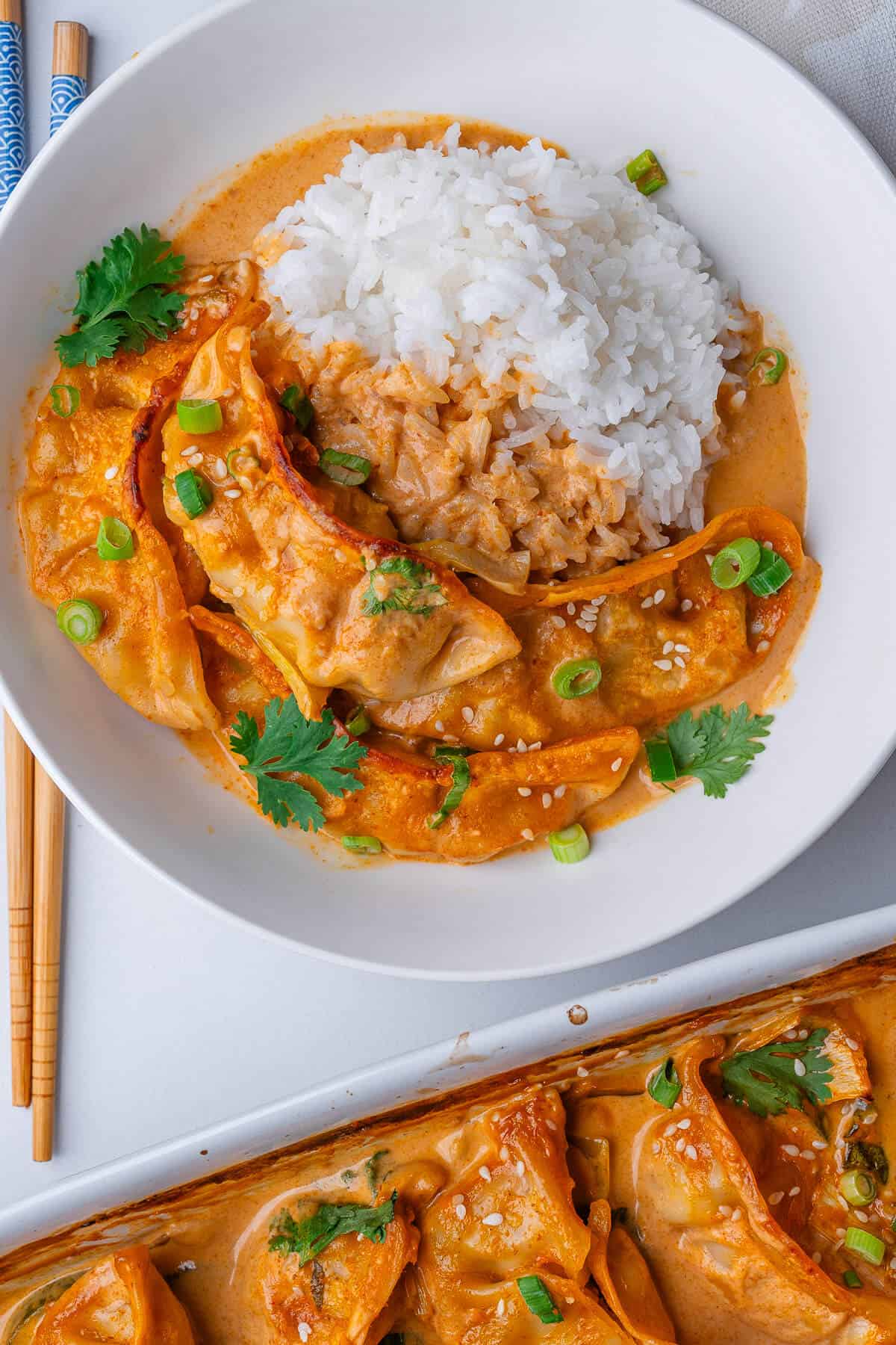 - Crazy Delicious: Dumplings are baked in a creamy red curry broth becoming juicy and flavorful