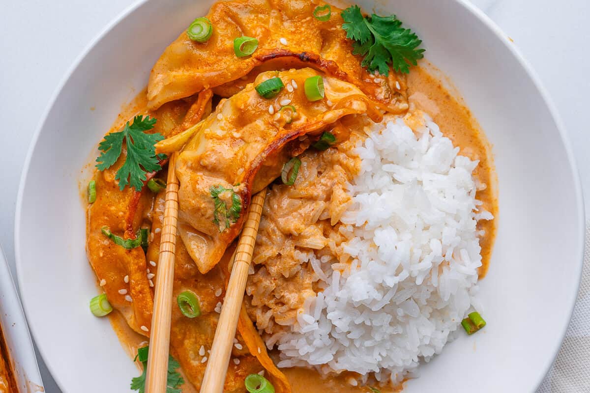 - Crazy Delicious: Dumplings are baked in a creamy red curry broth becoming juicy and flavorful