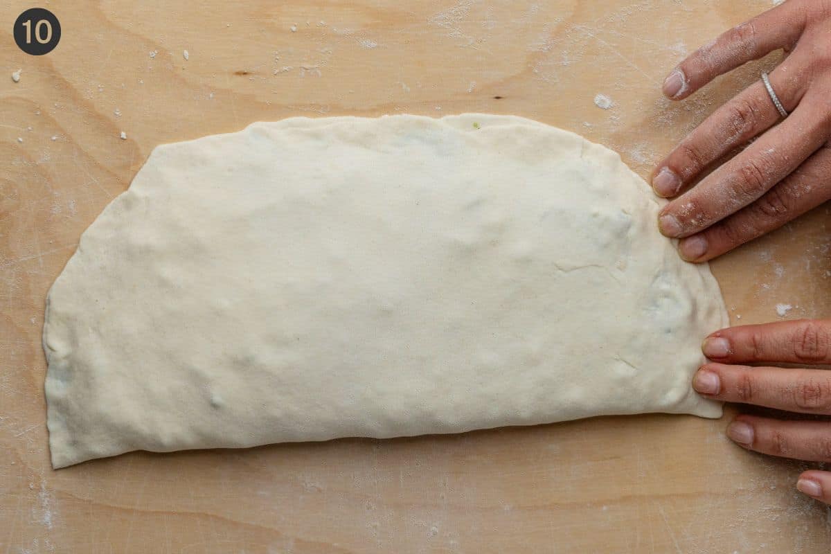 - Fold the dough over the filling and seal the edges with your fingers. Repeat with the 2nd dough