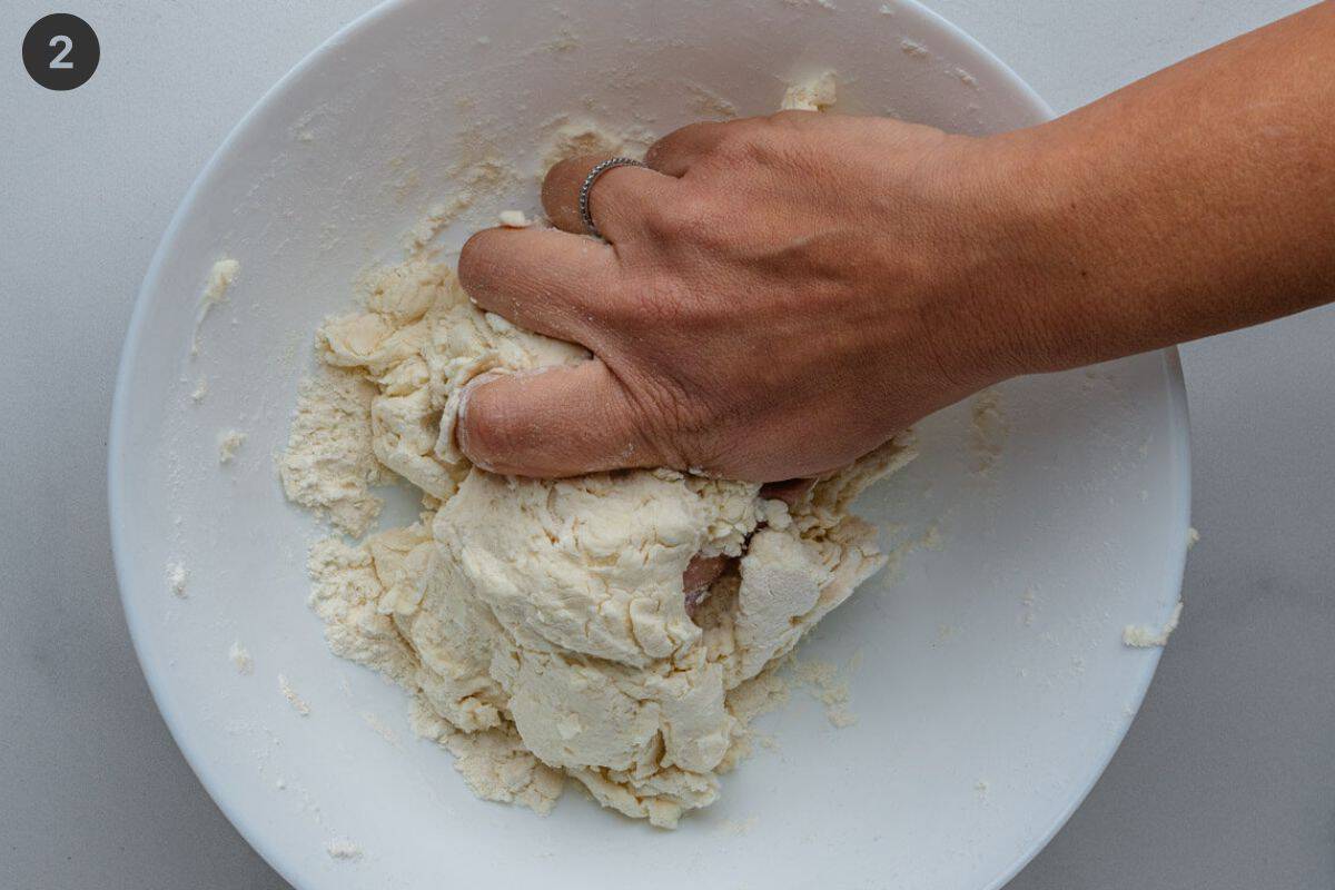 - Ensure to flour your work surface as this dusting of flour will prevent the dough from sticking while kneading and rolling