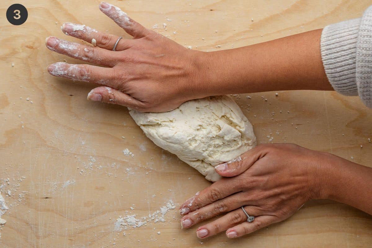 - Transfer to a floured table and knead for 3โ5 mins until smooth. *Sprinkle more flour if too sticky or wet. Then rest for 10 mins