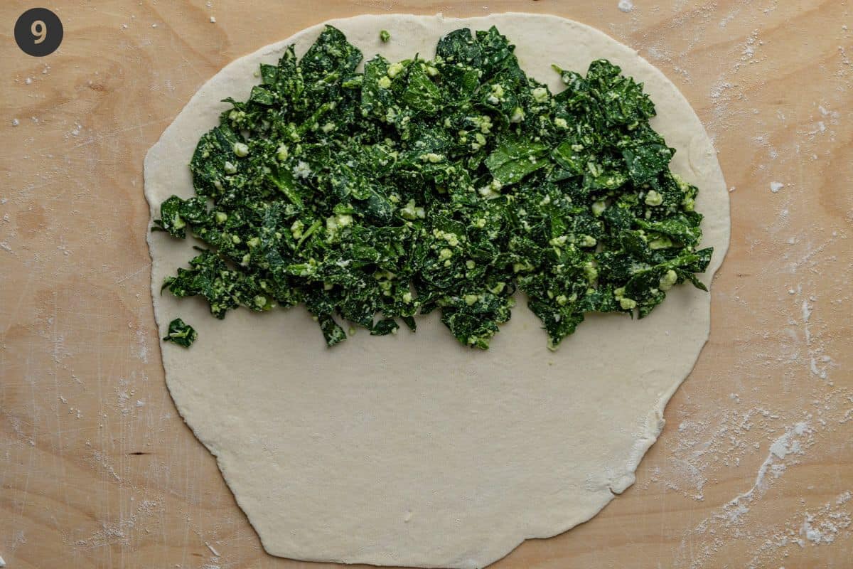 - Spinach is the core of my filling. I prefer using fresh spinach or baby spinach. Its best to chop it well and scrunch it with your hands to break it down. Frozen spinach can be substituted however it will need to be thawed and ensure all of the water is squeezed out. Swiss chard or kale can be used as alternatives however they would need to be cooked first as they are more dense