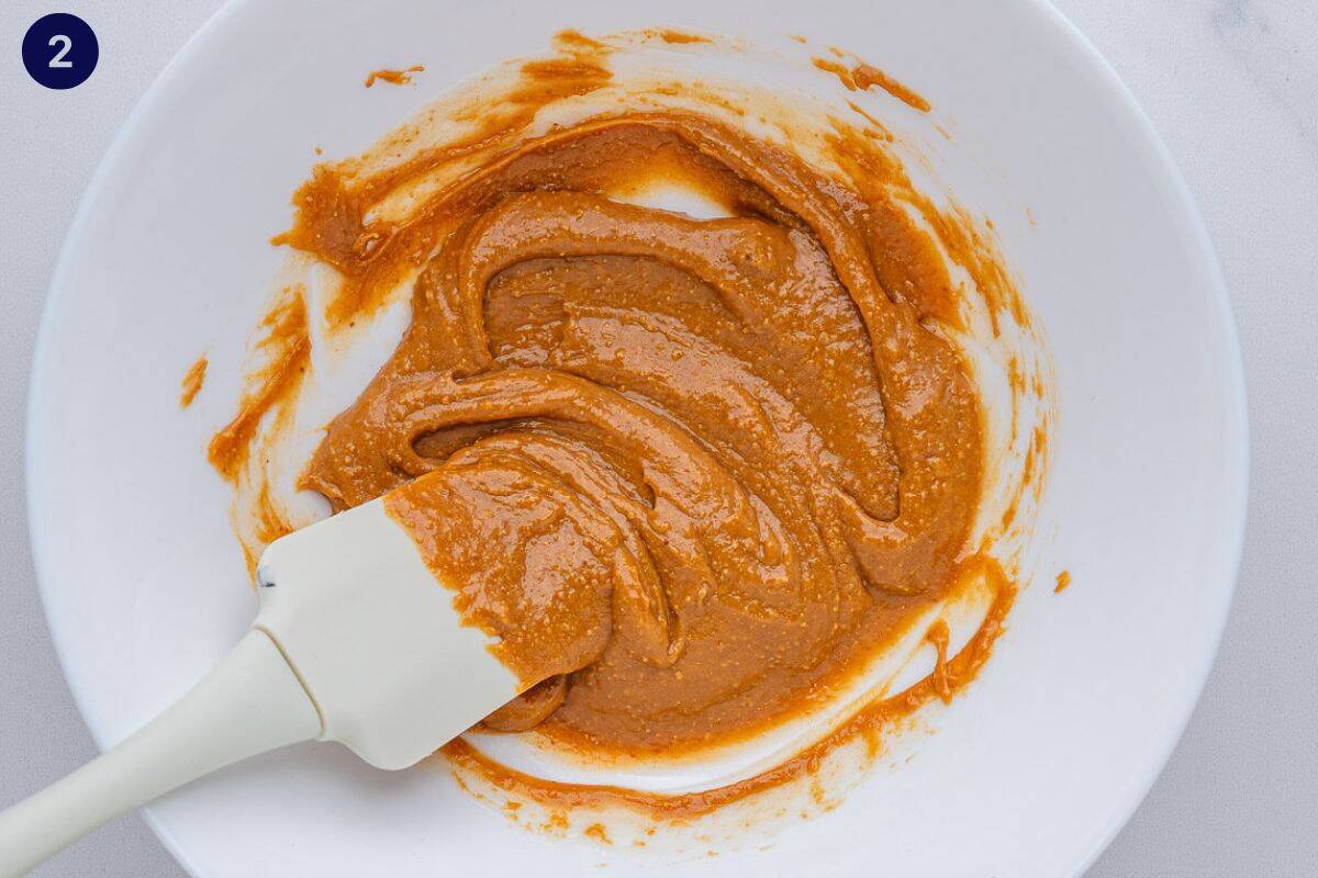 - In the meantime add the honey and peanut butter to a large bowl and stir together. *If the mixture seems thick especially in the colder months, microwave for 20-40 seconds so you have a smooth and runny consistency