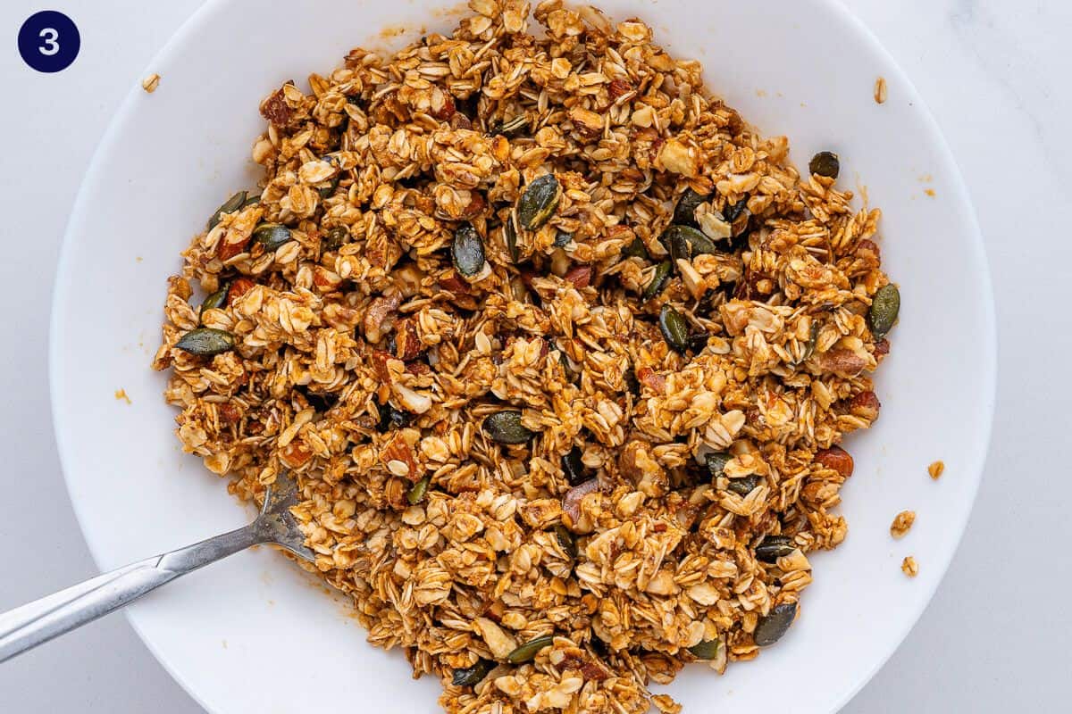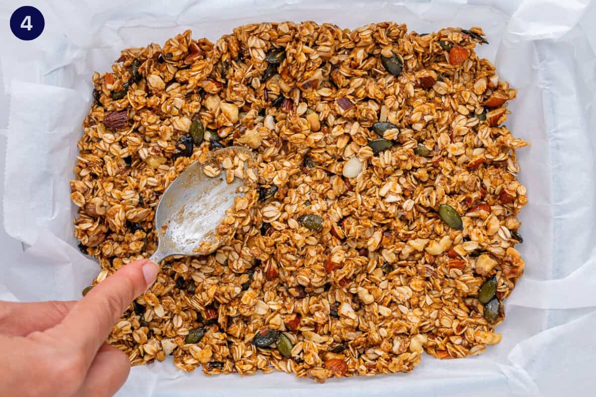 - Toasting the dry ingredients (oats and nuts) in the oven adds more flavor and texture before mixing