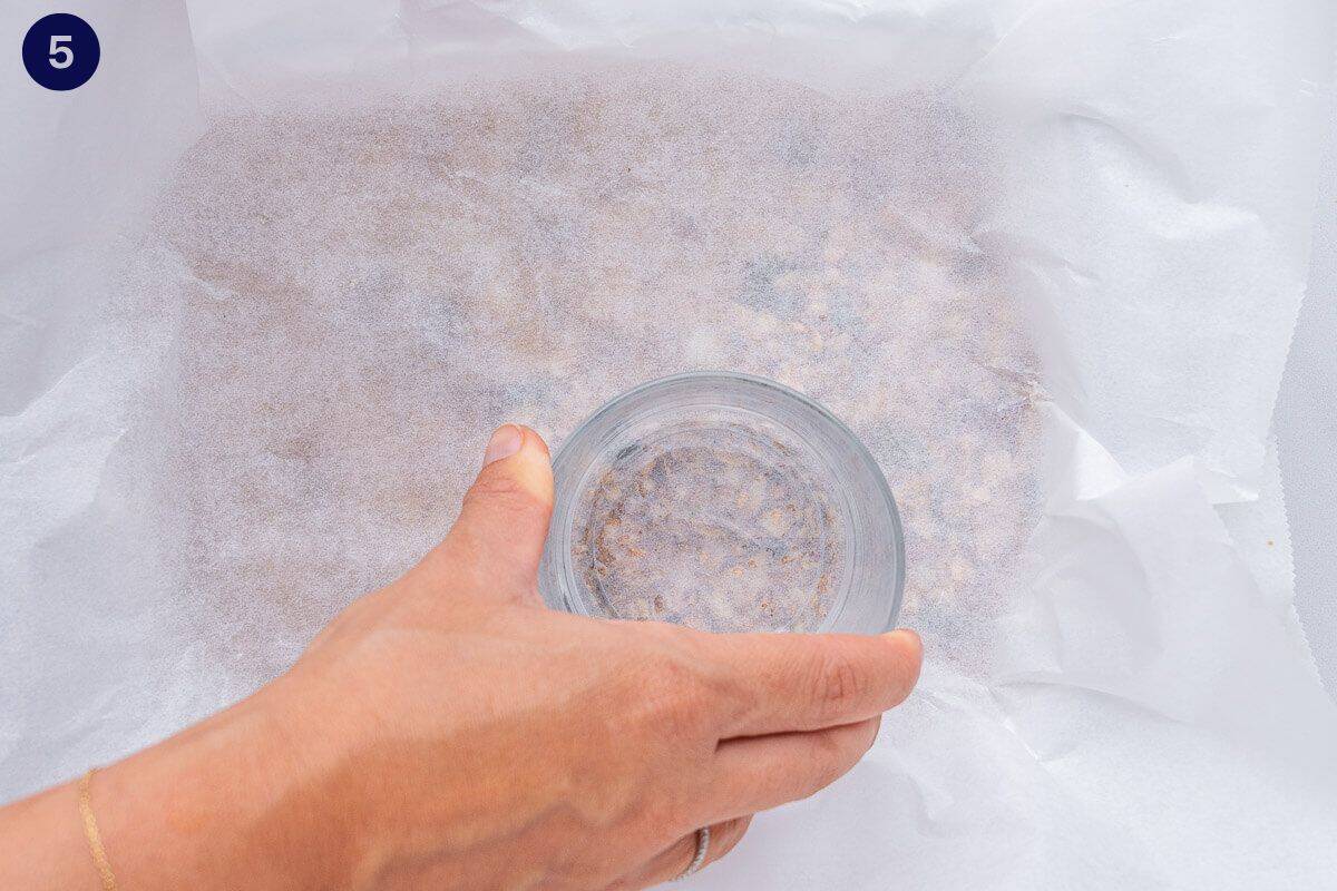 Step 5: Place a second sheet of parchment on top and press firmly with a cup to make the surface flat and compact