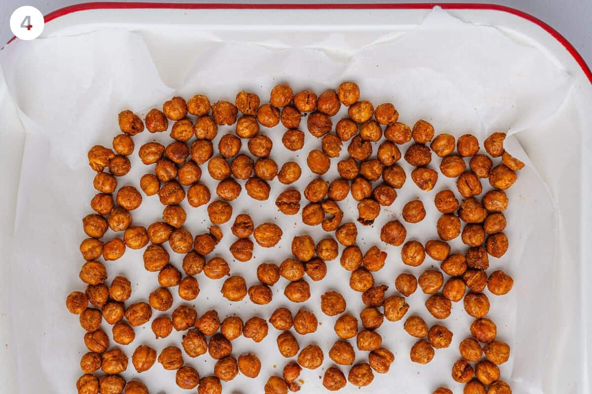 Once cooked, turn the air-fryer/oven off and let them rest inside for 5 minutes, which will help dry them out and become more crispy. More detailed roasted chickpeas recipe