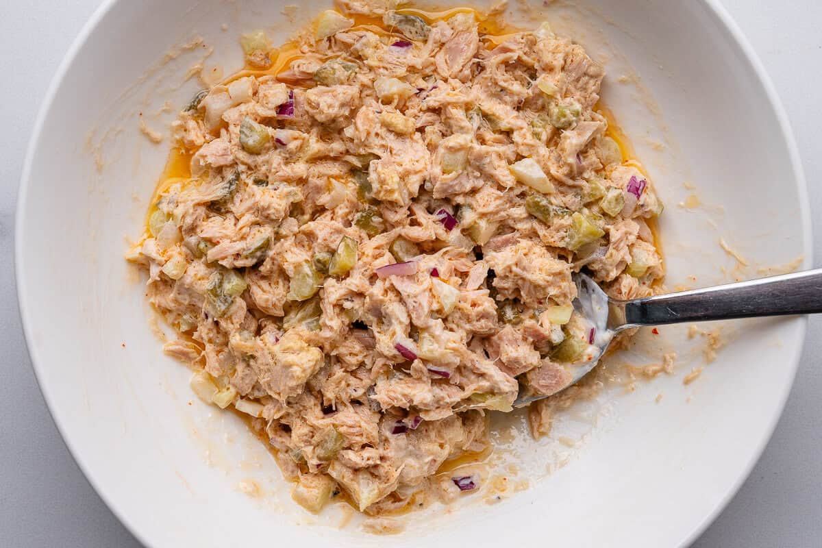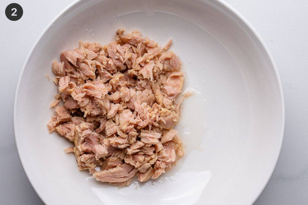 - Drain the tuna well to avoid a watery tuna mixture, then flake using a fork