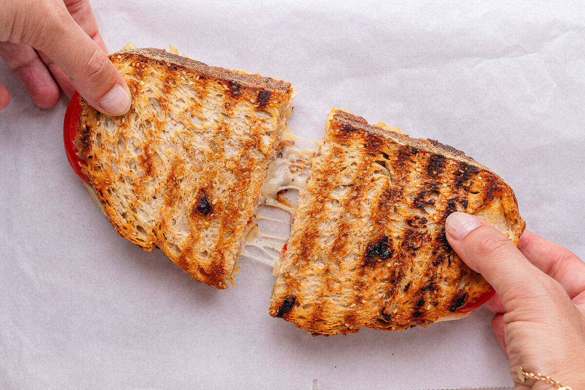 - Place the sandwich in a pre-heated sandwich or panini press and close until the bread is toasted and the cheese is all meltyYou can also place the sandwich on a skillet over medium heat with a light drizzle of olive oil or butter and gently flip with a spatula when the bread is toasted or toast in your air fryer